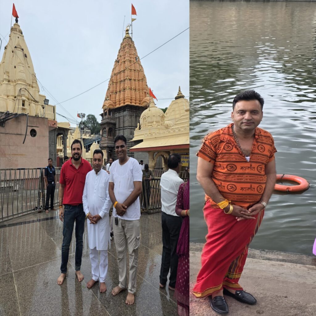 गुलाबपुरा। सावन के पहले सोमवार पर ओंकारेश्वर ज्योतिर्लिंग में बड़ी संख्या में शिव भक्त भगवान ओंकार के दर्शन करने पहुंच रहे हैं।आज पूर्व पालिकाध्यक्ष धनराज गुर्जर ने पवित्र सावन माह के प्रथम सोमवार को पवित्र तीर्थ नगरी पहुंचे पहले मां नर्मदा में स्नान कर मन को पवित्र किया फिर मंदिर पहुंचकर भोले बाबा के दर्शन किये। अन्य स्थान महाकाल, ओंकारेश्वर ज्योतिर्लिंग,काल भैरव व माता बगलामुखी के भी दर्शन कर क्षेत्र के खुशहाली की कामना की। साथ में शिव भक्त विकास मेवाड़ा,सौरभ वर्मा उपस्तिथ थे। उन्होंने भी अपने भोले बाबा को प्रसन्न करने के लिए ब्रह्म मुहूर्त में उठकर स्नान किया तथा भोले बाबा का ध्यान किया। पूजा अर्चना की।