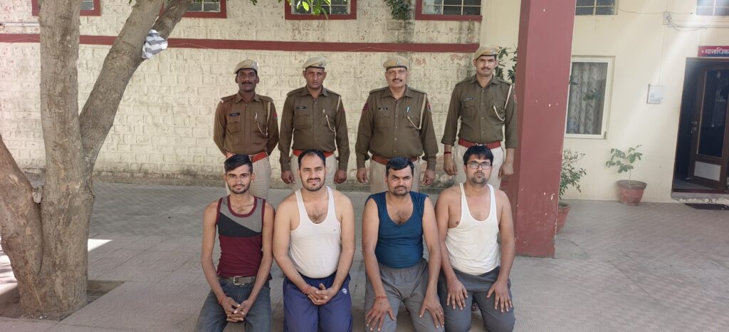सुनिल विश्नोई पुत्र मालाराम जाति विश्नोई निवासी म.नं. जी 27, जानकी नगर, पाल रोड़ पुलिस थाना चौपासनी हाउसिंग बोर्ड, जोधपुर,ठाकराराम पुत्र किशनाराम जाति जाट उम्र 34 साल पेशा ड्राईविंग निवासी लोलों की बेरी, मिठड़ा खूर्द पुलिस थाना धोरीमन्ना जिला बाड़मेर, लक्ष्मणराम पुत्र चुतराराम जाति जाट उम्र 21 साल पेशा ड्राईविंग निवासी सवाउ मूलराज,पुलिस थाना गिड़ा जिला बाड़मेर, 04. विरेन्द्र पटेल पुत्र सोनाराम जाति पटेल उम्र 26 साल पेशा ड्राईविंग निवासी पटेलों का वास, सालावास, पुलिस थाना विवेक विहार, जोधपुर।
